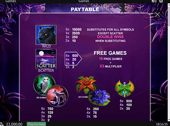 Очаровательный лунный пейзаж, необычные цветы и эффектные животные… Все это относится к игровому автомату под названием Panther Moon, который переносит гемблеров в ночные джунгли. Здесь игроки смогут полюбоваться на животных, которые имеют наибольшую активность именно в ночное время. К примеру, грациозная пантера собирается выйти на охоту, и нужно быть особо осторожным, чтобы не стать ее добычей. Впрочем, эмулятор Лунная пантера совершенно безопасен для гемблеров, ведь он позволяет попасть в джунгли не выходя из дома.